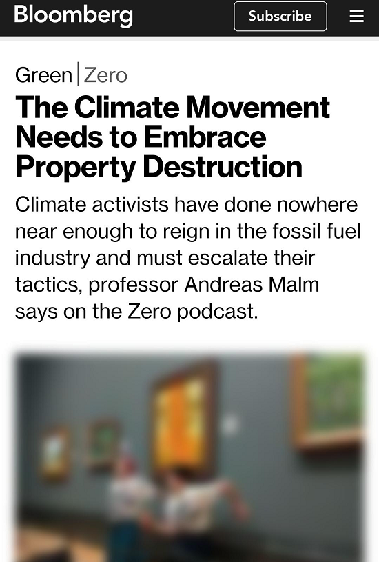 And now, Bloomberg News is calling for “sabotage and property destruction” to achieve some sort of twisted climate justice outcome by destroying things. In an article that has already been stealth edited to try to walk back the open threats of domestic terrorism, Bloomberg.com reports that climate activists must resort to property destruction. The original headline declared, “The Climate Movement Needs to Embrace Property Destruction,” claiming climate activists “must escalate their tactics.”